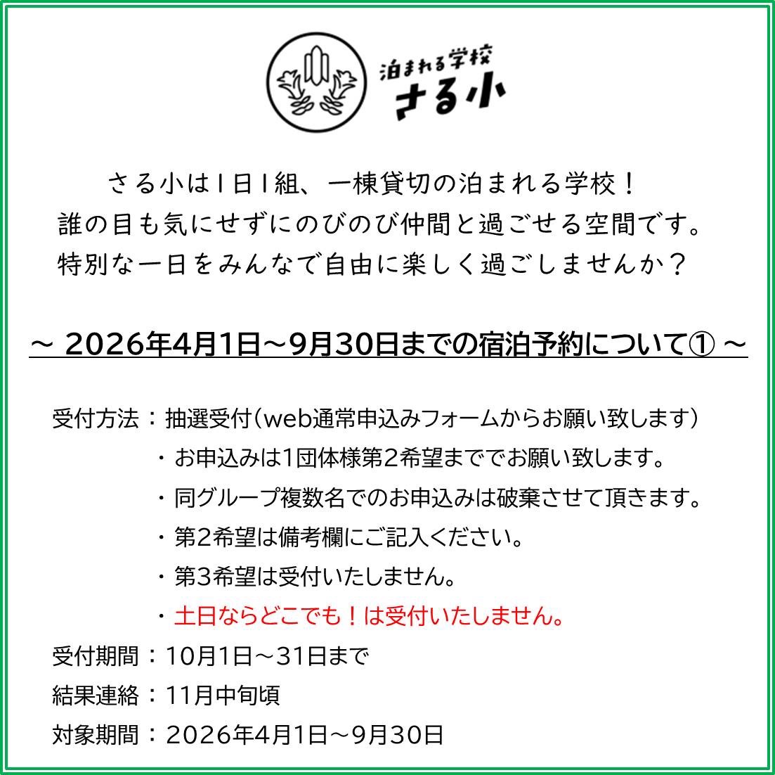 東京から車で約2時間。群馬県みなかみ町で自然に包まれ静かに佇む「泊まれる学校さる小」は、温もり溢れる木造校舎にその名の通り「泊まれる」のです。しかも、1日1団体様の貸切で利用することが出来ます。校舎の目の前は広々としたグラウンド。野球・サッカーに運動会など多様に利用できます。夏は眺めの良いプールで水泳。冬になれば雪合戦!校舎の中では、吹奏楽やピアノ、バンドの練習だって周りを気にせず行えます。自然豊かな恵まれた環境の中、是非「合宿」「研修」「体験学習」など、皆さまの目的に合わせてご活用ください。